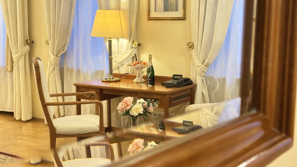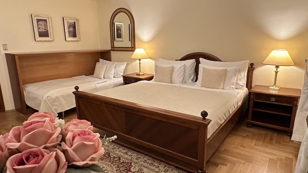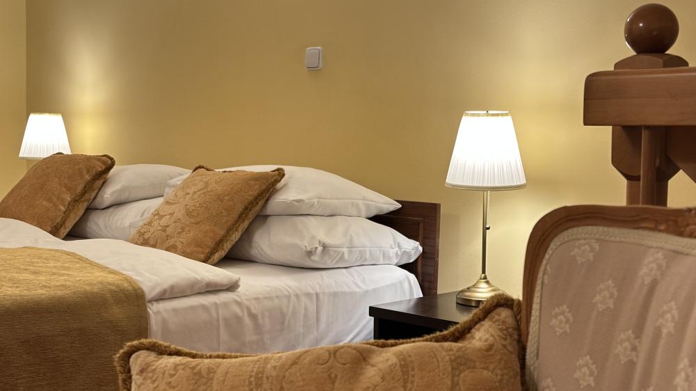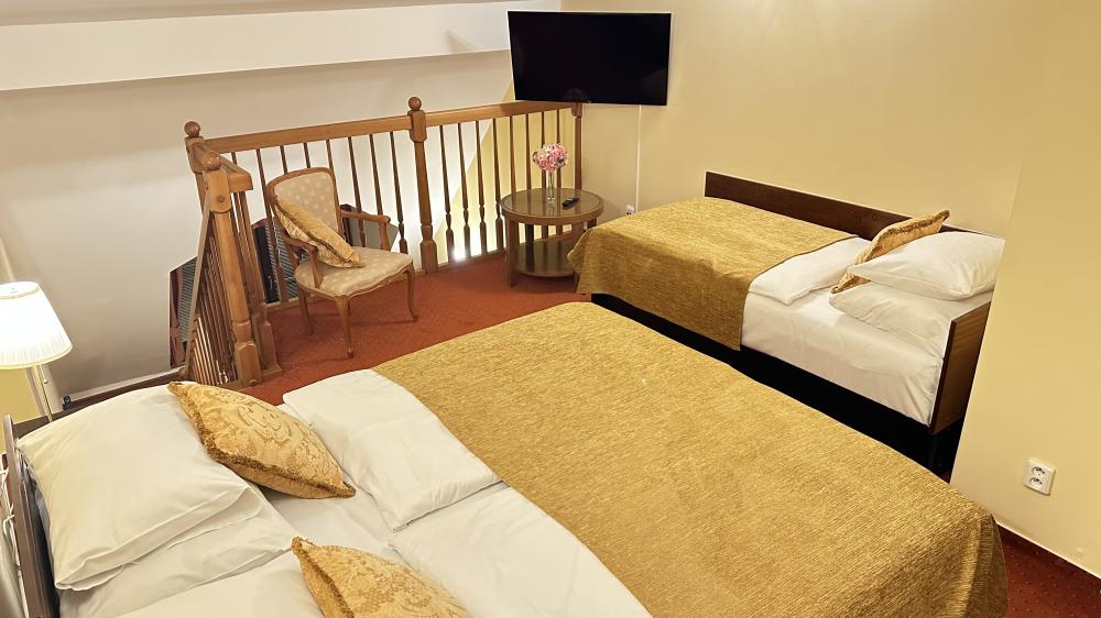 - Junior Suite – prostorný pokoj s nadstandardním vybavením, ideální pro výjimečné příležitosti nebo hosty, kteří hledají vyšší komfort.